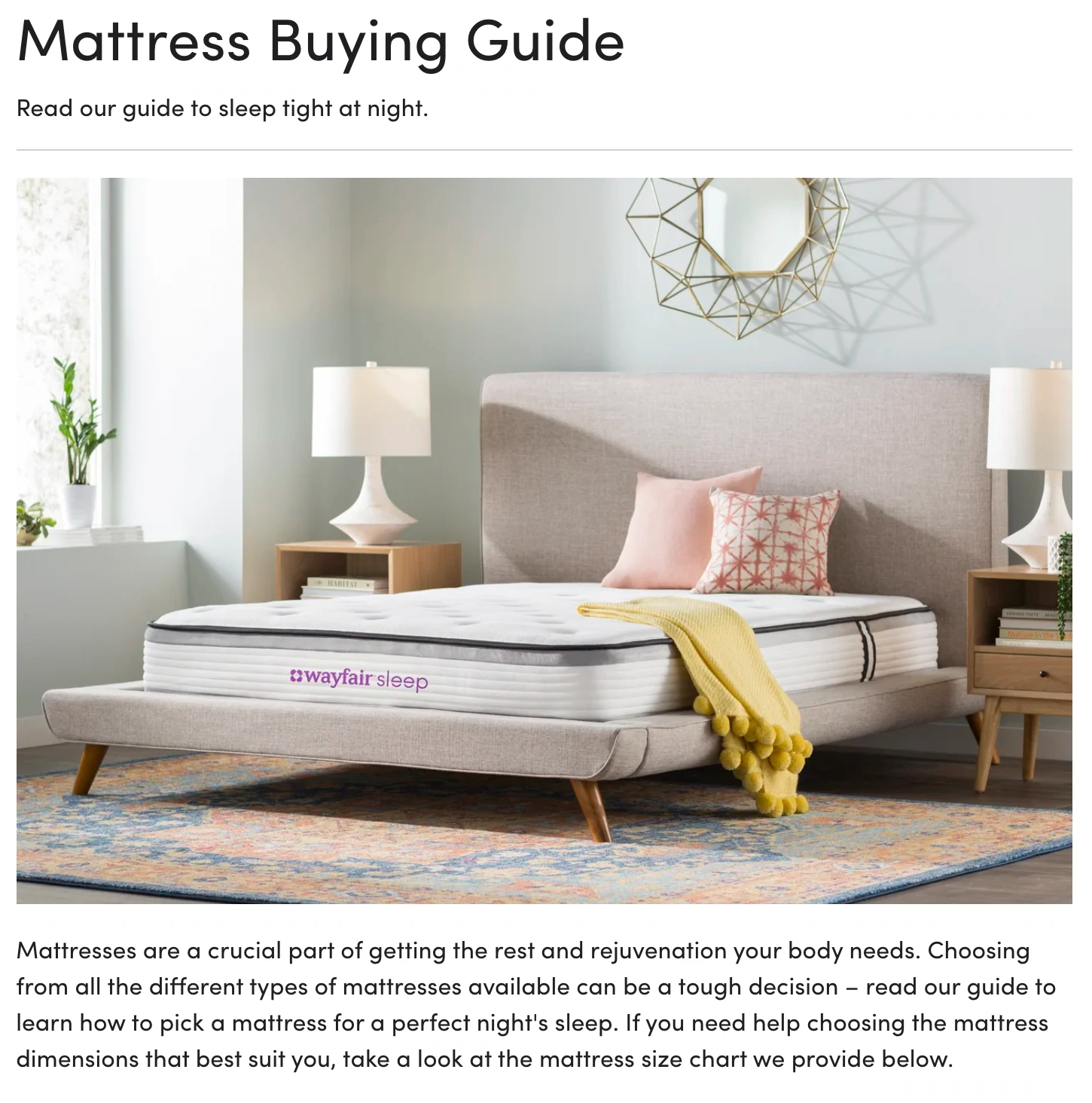 Wayfair 以其为其产品创建买家指南而闻名,例如 床垫购买指南。