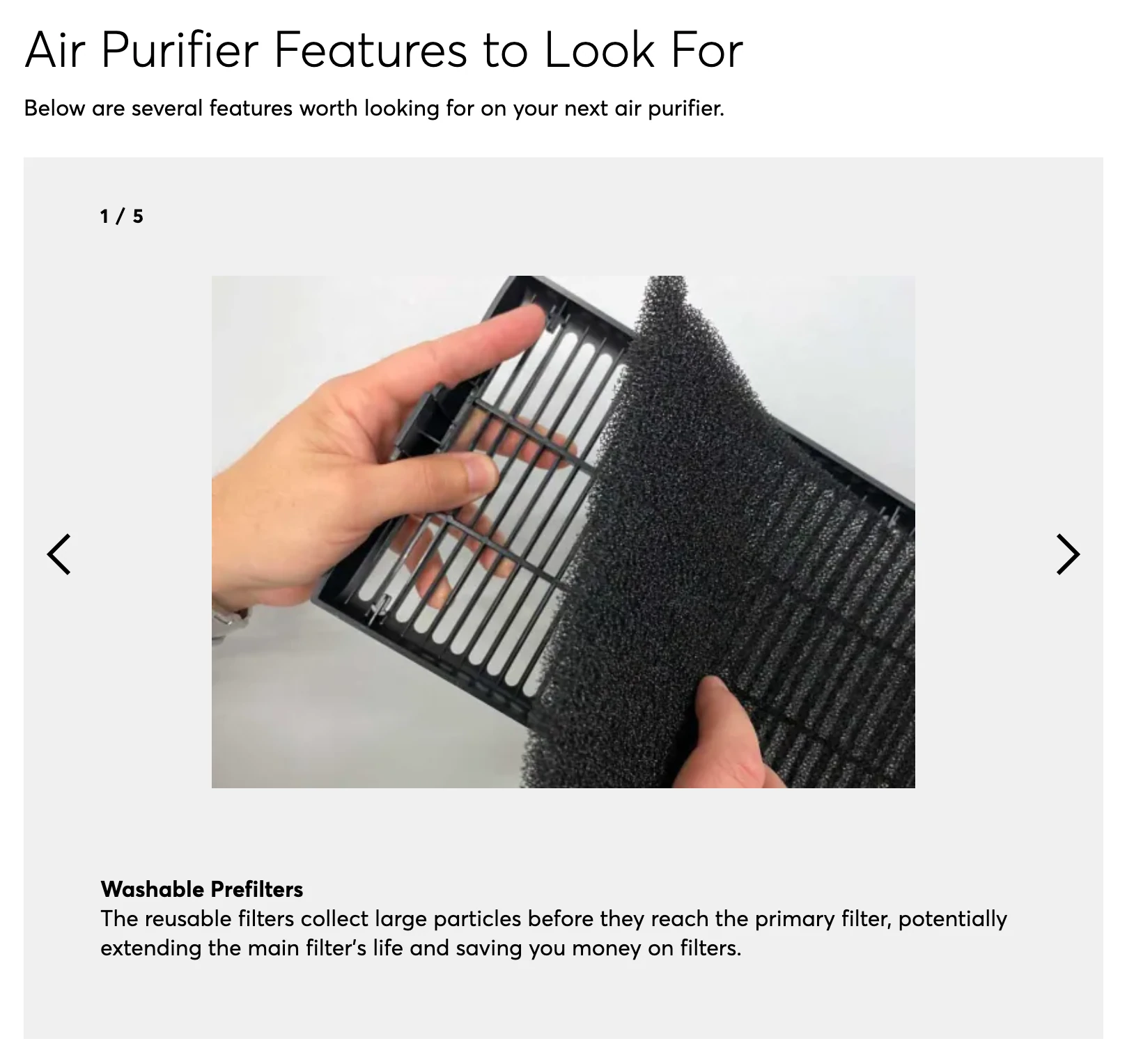 消费者报告 还为读者提供了空气净化器主要功能的照片。 无论您是在网上购买还是在实体店购买,您都清楚地知道您对空气净化器的需求,并且可以轻松识别。