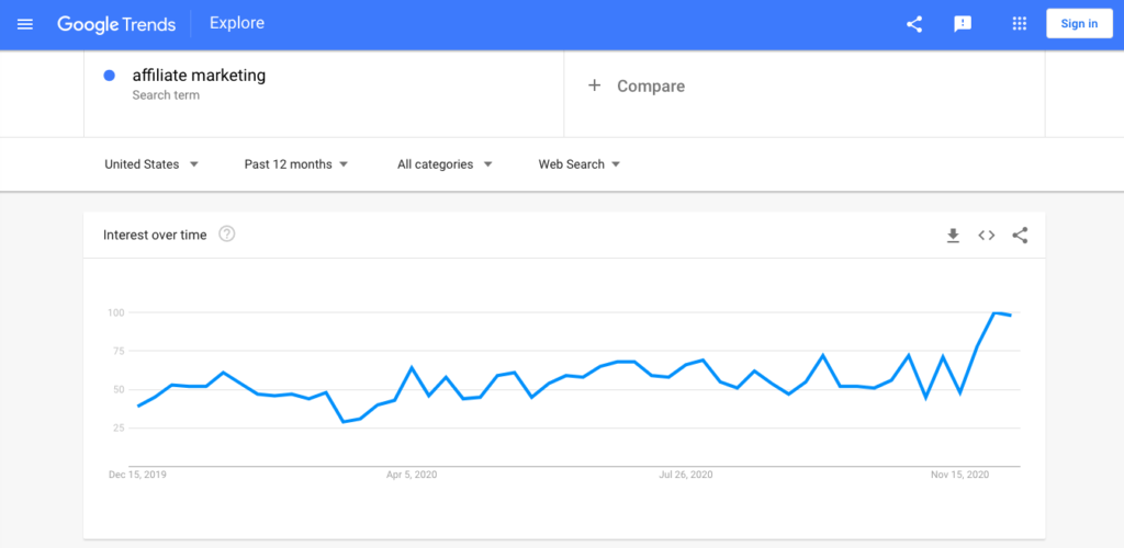 因此,研究您正在考虑的任何关键字的搜索量和潜在竞争非常重要。 一种方法是使用 Google 趋势: