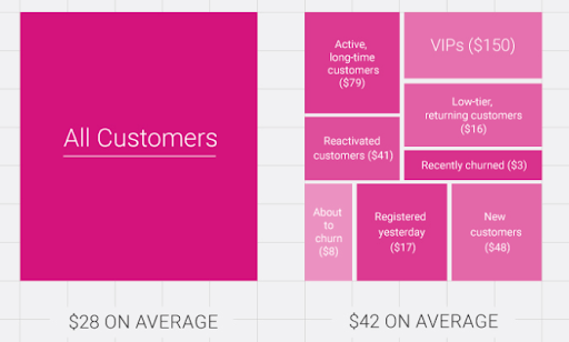 这是一件好事,因为您的小组越细化越好。 这就是 Optimove 在将他们的受众划分为基于行为的群体后,他们的平均客户订单价值从 28 美元变为 42 美元时发现的。