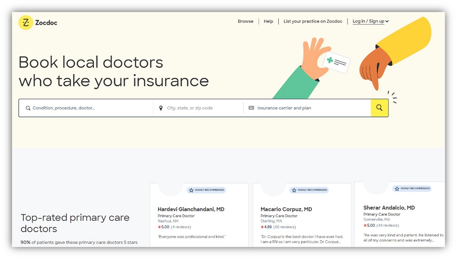 ZocDoc 允许用户仅查找适用于他们的运营商或计划的做法。 因此,如果您想要突出您的诊所接受的所有保险计划,这个医生评论网站非常适合您的业务。