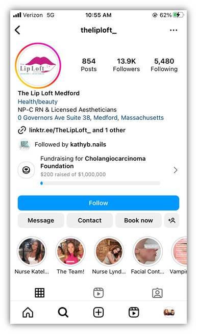确保您的医疗保健业务的 Instagram 个人资料经过优化,方法是在您的用户名和简介中清楚地包含您的公司名称和地址。 您还可以为潜在患者添加直接从您的 Instagram 个人资料进行预订的方式!