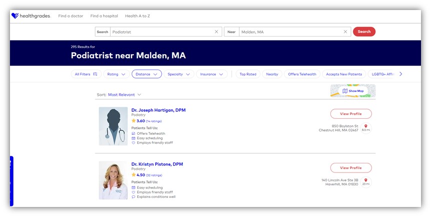 Healthgrades 是一个医生评论网站,它更侧重于每个提供者的声誉而不是商业信息(尽管它确实允许您提供地址和联系信息等基本信息)。 通过这个医生评论网站,用户可以根据他们的特定需求或偏好搜索提供者。