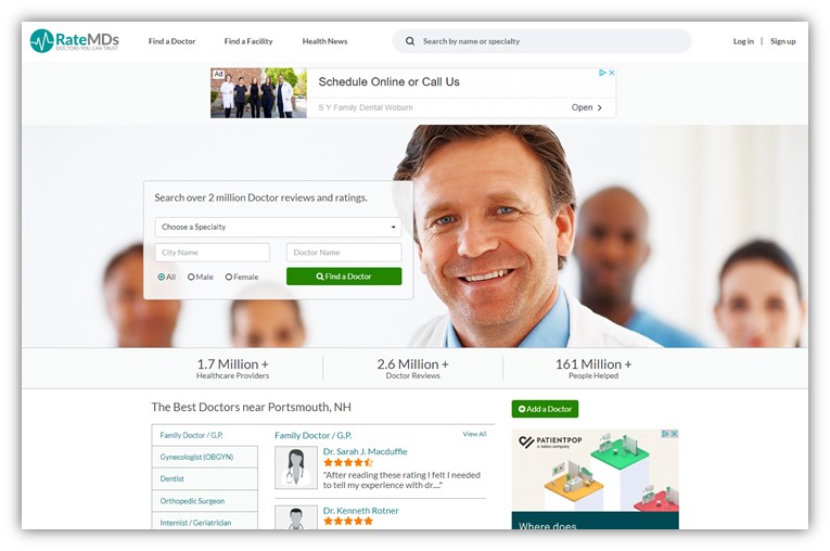 如果您还没有使用 RateMDs,很可能您的竞争对手已经使用了! 超过 170 万的提供者已经在使用这个医生评论网站,在 RateMDs 上列出您的医疗保健业务是显而易见的。