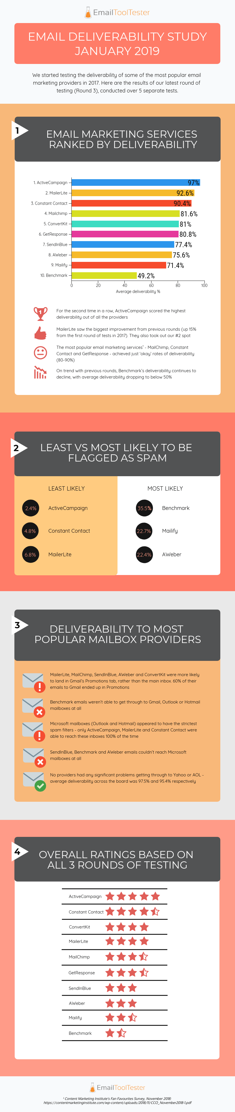 不过,不可否认的是,它们可以对竞选成功产生巨大影响。 我们测试的工具的交付率从 49% 到 97% 不等,通过使用正确(或错误!)工具,您可以将活动的成功率提高一倍或减半。