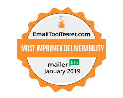 MailerLite 凭借比第一轮提高 15% 的可交付性赢得了我们的“最大改进”奖。