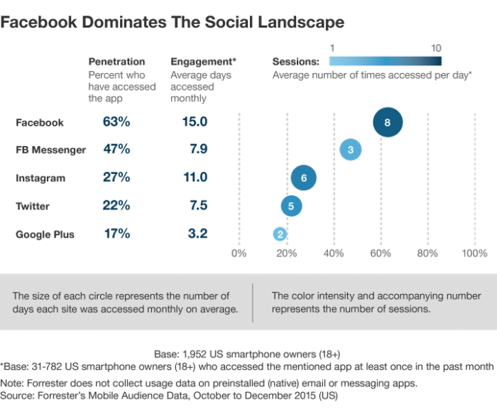 如果有的话,这证明了 Facebook 的易用性和可访问性。 然而,这些统计数据也表明 Facebook 可能不再是当时的“时尚”平台。 当然,尽管在线青年人数有所下降,但统计数据仍然显示 Facebook 在整体受众渗透率方面处于领先地位。