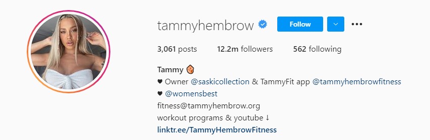 Tammy Hembrow 教授女性如何为自己的目标进行训练,并以食物为燃料,努力变得更强壮、更健康、更快乐。 在 2015 年第一个儿子 Wolf 出生之前,她在 Instagram 上推出了自己的个人品牌。