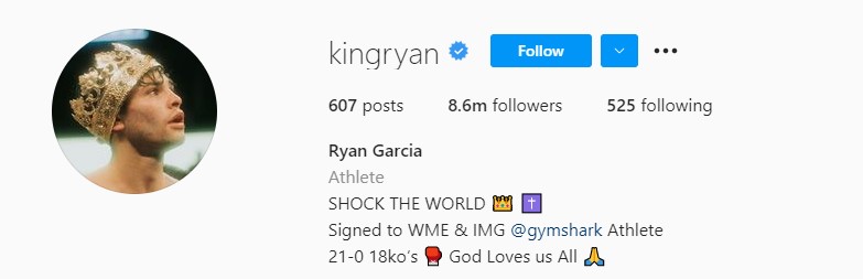 瑞安·加西亚(Ryan García)是美国职业拳击手。 自 2021 年 1 月以来,他一直持有 WBC 临时轻量级冠军头衔。《环》杂志和跨国拳击排名委员会将他列为世界第三好的现役轻量级选手。