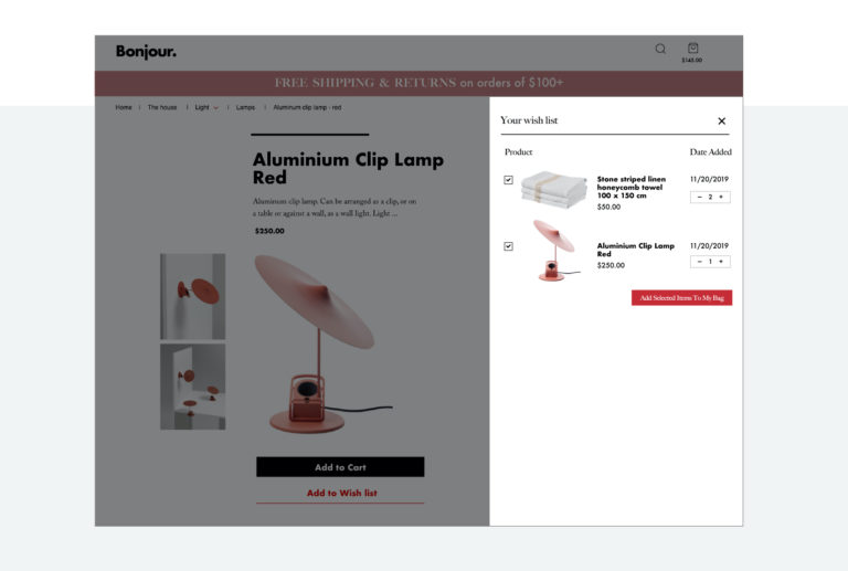 创建后,可以快速访问他们的列表,可以轻松地将保存的项目添加到他们的购物车中以进行快速结帐。
