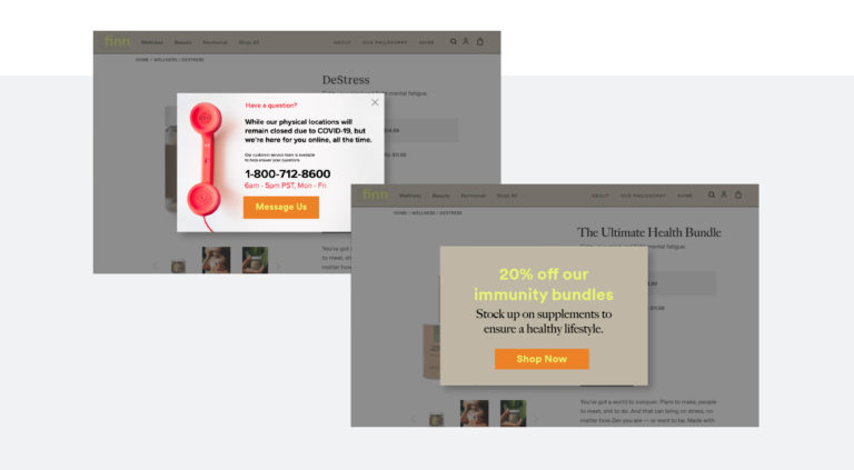 这些弹出窗口可能会突出显示促销优惠以鼓励购买或与 COVID-19 相关的重要更新,例如当前的营业时间和交货窗口。