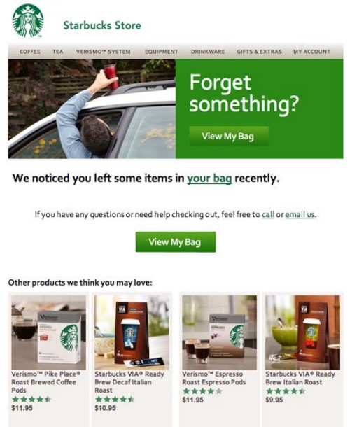 这封电子邮件的结构是车放弃策略中常见的,尤其是当品牌的轻柔的手法仍然鼓励消费者完成购买目标。