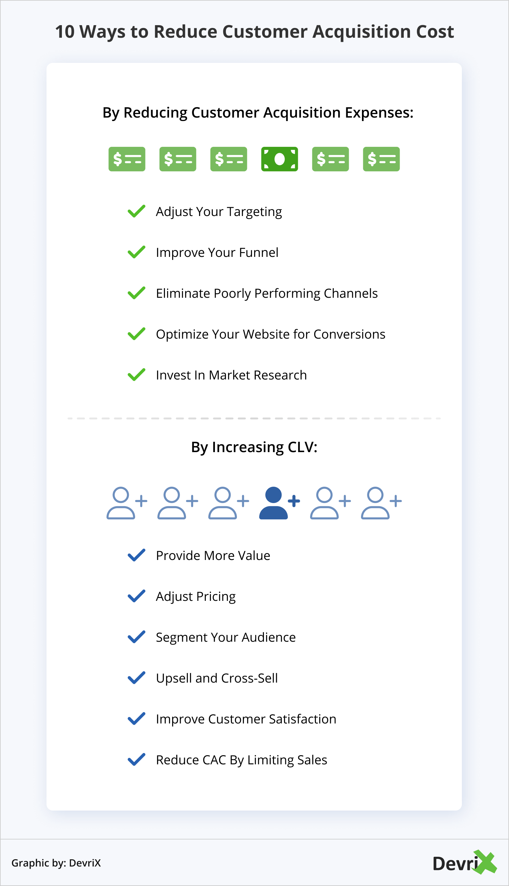 一般来说,有两种方法可以降低获客成本。 您可以减少为获得新客户而投资的金额,或增加他们的生命周期价值。