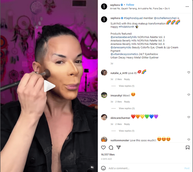 丝芙兰总是通过协调一致的活动和适合他们产品的影响者来做到这一点。 喜欢这个与变装传奇@rochellemoncheri 合作的 Pride 活动。
