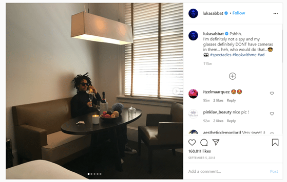 当 Snapchat 发布他们的 Spectacles 眼镜时,他们与 Lukas Sabbat 合作向他的追随者推广该产品。 协议是 Sabbat 将为他的 Instagram 故事创建三个帖子,另外一个在他的 Instagram 提要上。 在巴黎时装周期间,他还将在公共场合佩戴这副眼镜。 但那并没有发生。 Lukas 只发布了一些约定的帖子,并且在时装周期间没有戴眼镜。 该协议明确规定了条款,因此很快就提起了公开诉讼。