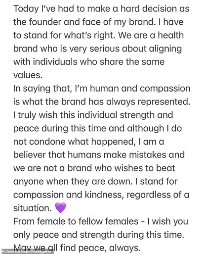 在分享给 JSHealth 创始人 Jessica Sepel 的 Instagram 页面的帖子中,这位维生素老板写道: