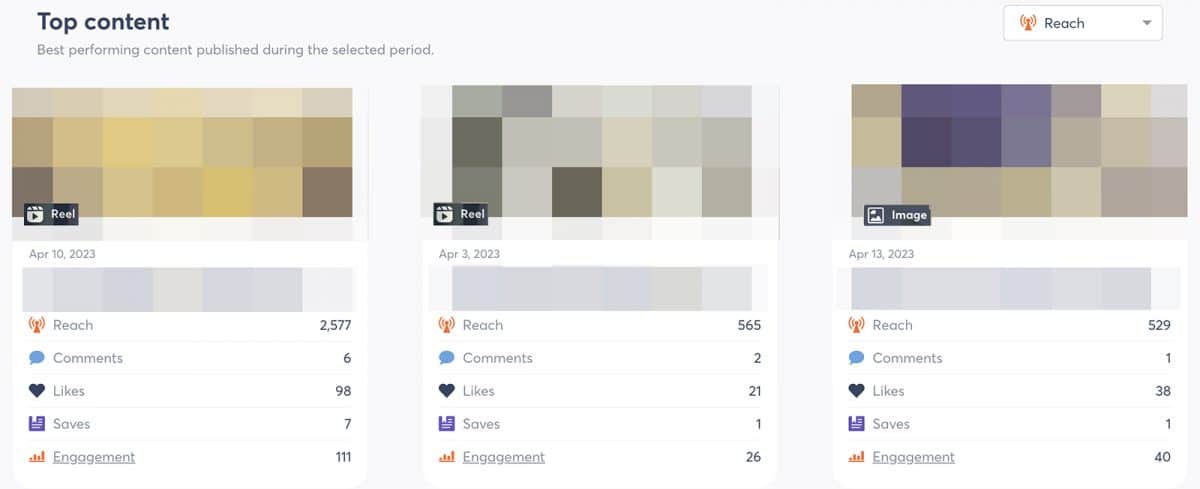 因此,如果您的首要目标集中在 Instagram 指标(例如覆盖面和品牌知名度)上,那么发布卷轴可能是您最好的选择。 事实上,如果您打开 Agorapulse 仪表板并按覆盖率对热门内容报告进行排序,您可能会看到大部分内容。