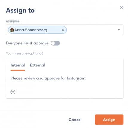 需要您的老板或客户在上线前批准您的 Instagram 卷轴吗? 借助 Agorapulse,您可以设置包括内部和外部利益相关者的审批工作流,这样您就可以在不损害品牌的情况下高效工作。
