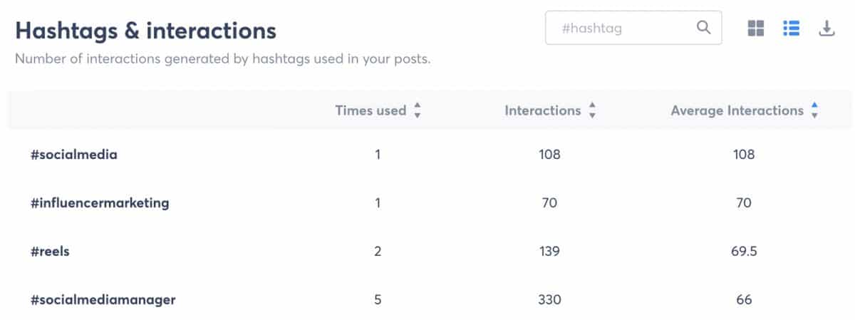 推动发现任何类型内容的一种方法是使用高性能主题标签。 Agorapulse 的主题标签报告可以帮助您确定哪些标签获得最多的互动,以便您可以优先将它们添加到新内容中。