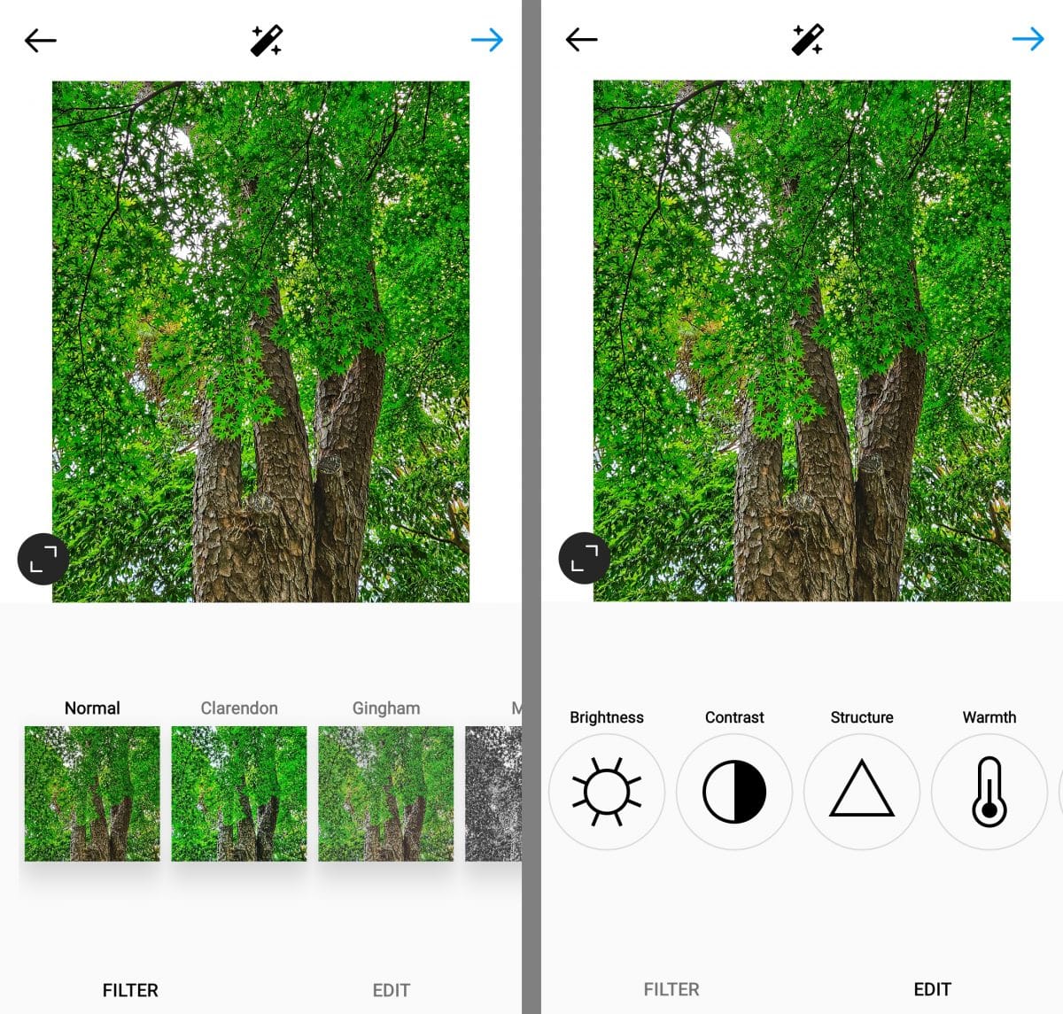 Instagram 用于编辑帖子的内置工具远少于用于编辑卷轴的工具。 但是,移动应用程序可让您访问: