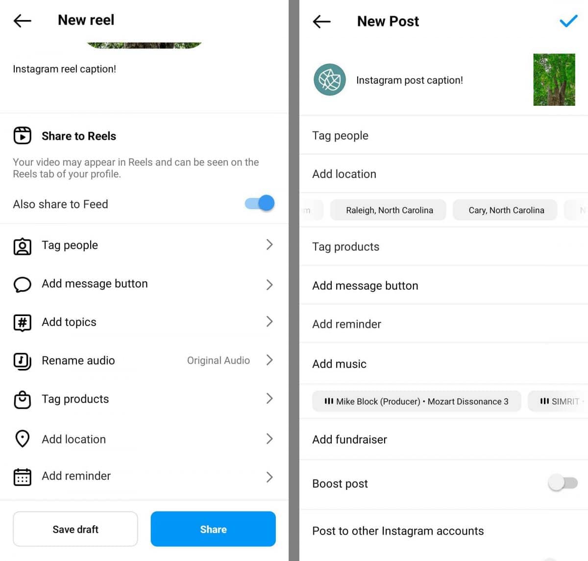 卷轴和帖子都支持产品和位置的应用内标签。 如果您有 Instagram 商店,您可以标记产品以鼓励客户直接从您的内容中浏览和购买商品。 如果您有实体店面或场地,您可以使用位置标签来获得更多客流量。