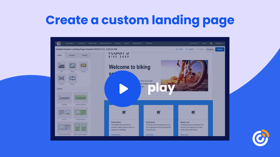 您可以使用登录页面模板作为您的基础或基础,使用登录页面构建器(如 Constant Contact 中内置的构建器)创建登录页面。