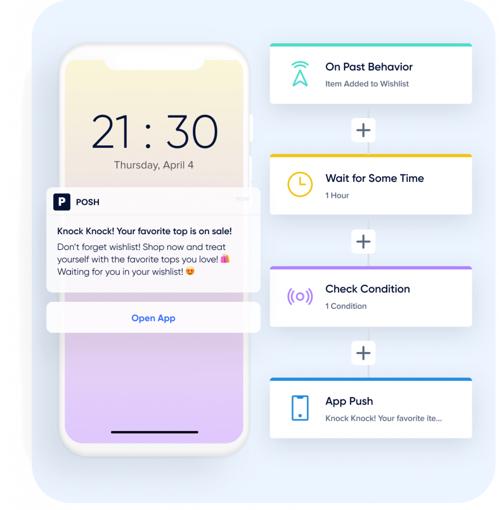 - 自动化的全渠道追加销售或补货活动可刺激重复购买,并根据客户的兴趣、首选渠道和参与时间进行个性化。