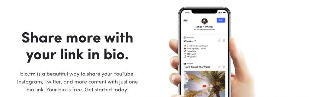 与 Linktree 相比,Bio.fm 为用户提供了更多的控制权。 您可以通过嵌入 YouTube 视频、添加投票或收集电子邮件地址等方式共享更多链接,如果您想要共享的不仅仅是链接,它是一个很好的工具。 更重要的是,您基本上可以将您的简历放在自动驾驶仪上,因为您的最新帖子将自动显示。 无论您是网红还是品牌,它都提供了广泛的功能,可帮助您优化营销活动并将流量从 Instagram 吸引到其他渠道。