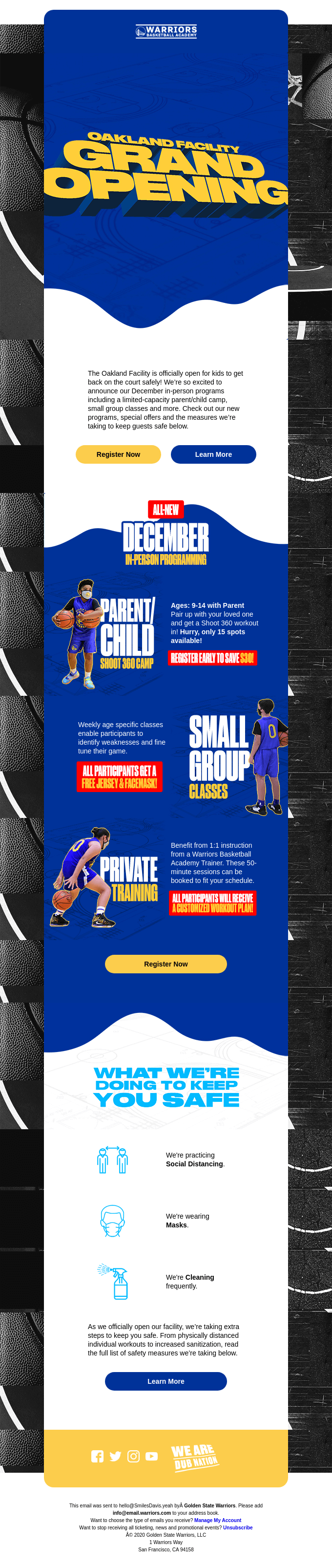 金州勇士队提醒球迷,他们的奥克兰设施将重新开放,以进行面对面的儿童节目。 虽然他们有关于课程的信息让每个人都兴奋,但他们还介绍了安全程序,让每个人都了解情况。
