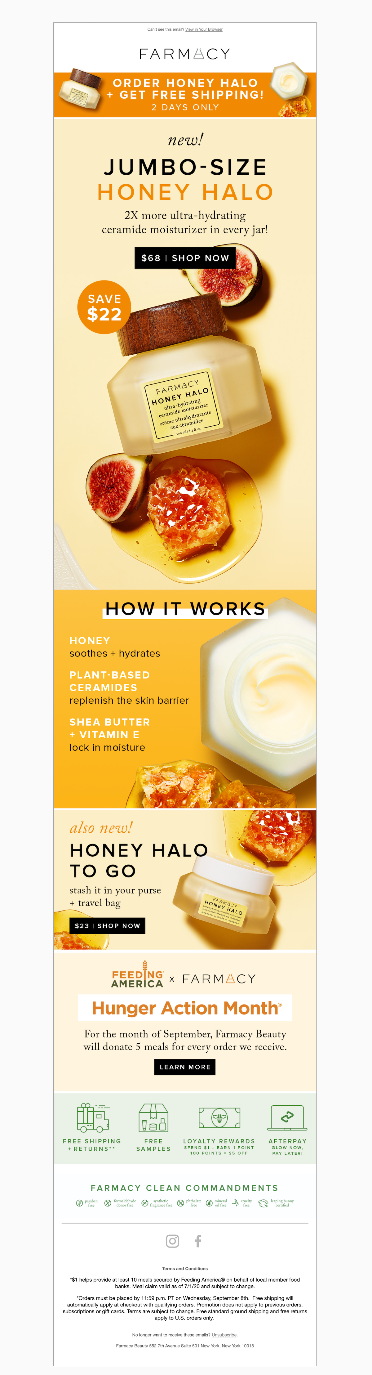 Farmacy 采取了类似的方法,通过提供折扣来庆祝新产品推出一周年。 该消息是产品介绍(或重新介绍),提供限时优惠,可在任何订购该产品时免费送货。