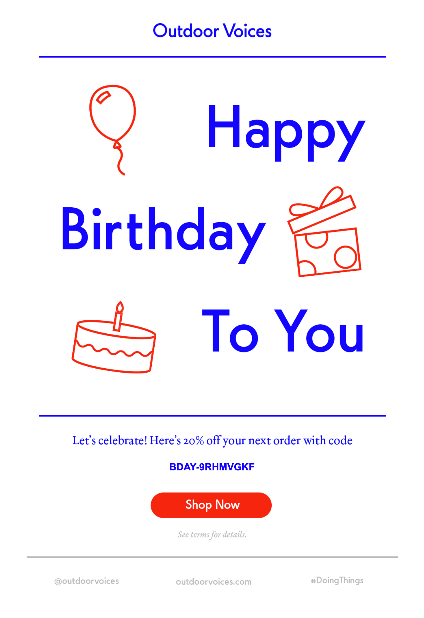 Outdoor Voices 会发送一封带有折扣代码的半生日电子邮件。 他们的推理? “如今过半生日得不到足够的爱。”
