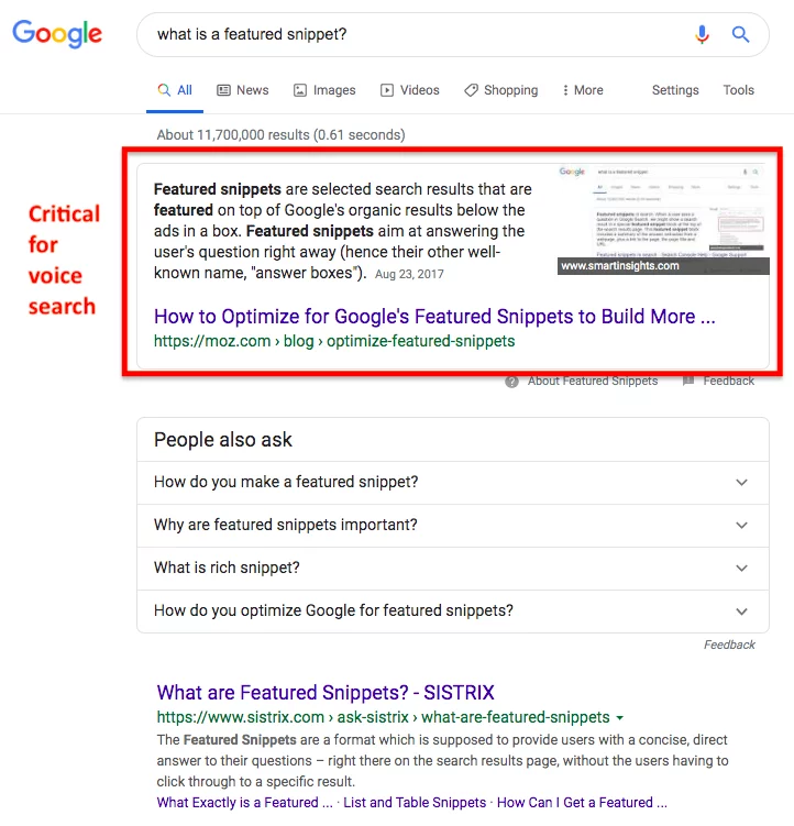因此,您需要针对排名零的片段(或特色片段)优化您的内容,这本质上是语音助手在回答用户问题时给出的唯一答案: