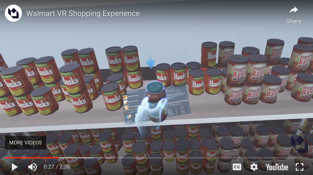 沃尔玛创造了完全沉浸式的“店内”VR 购物体验。 虚拟购物者可以进入商店,从货架上拿起产品,检查完整的产品详细信息,然后将其放入购物车: