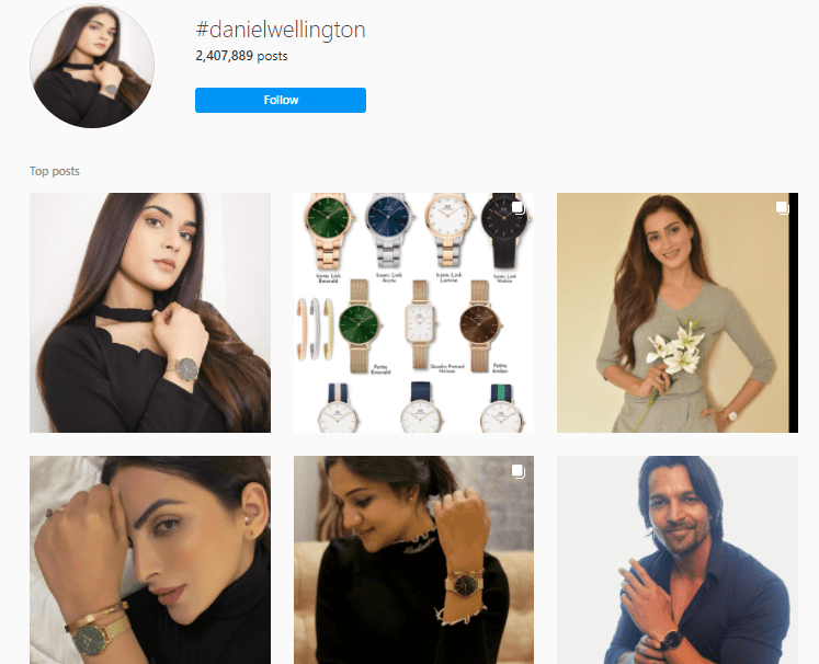 当您在 Instagram 上搜索“#danielwellington”时,您可以找到超过 200 万条帖子。 其中许多帖子来自与该品牌合作以增加其曝光率和销售额的影响者。