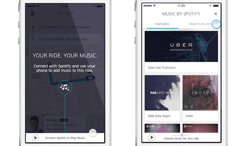 Uber 和 Spotify 的合作使 Uber 乘客可以在乘车时播放他们的 Spotify 播放列表。 虽然 Uber 能够为他们的乘客提供个性化的体验,但该计划还鼓励用户改用 Spotify Premium。