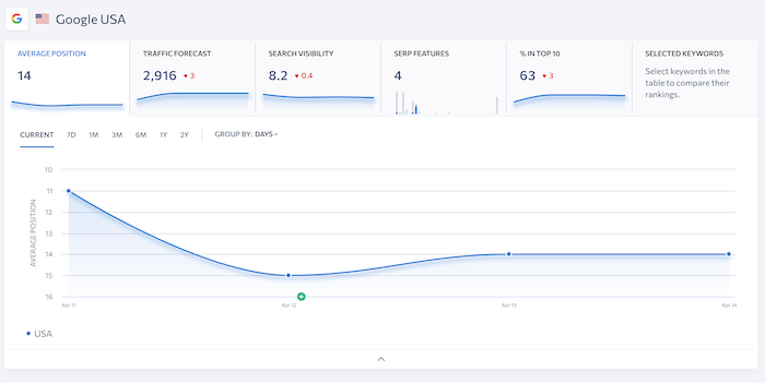 SERPWatcher 具有易于使用的界面,可帮助您跟踪网站的性能、分析竞争对手的排名并确定改进机会。