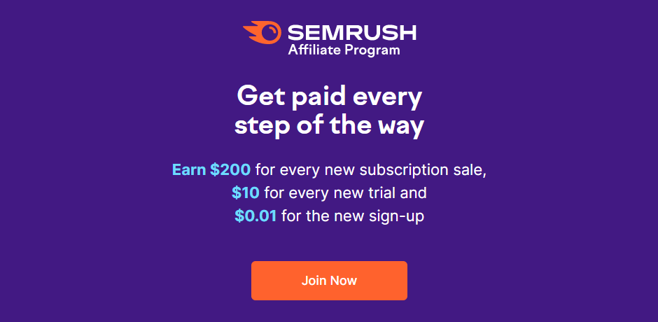 - SEMrush。 SEMrush 是所有在线营销人员和内容编辑器的首选。 但他们并不是唯一可以从中受益的人。 SEMrush 提供定期会员计划,佣金率为 40%,并为各种用户活动(试用、注册)提供奖励。