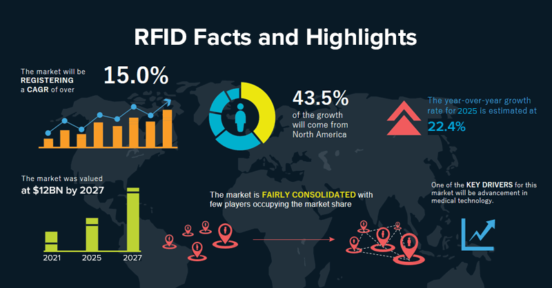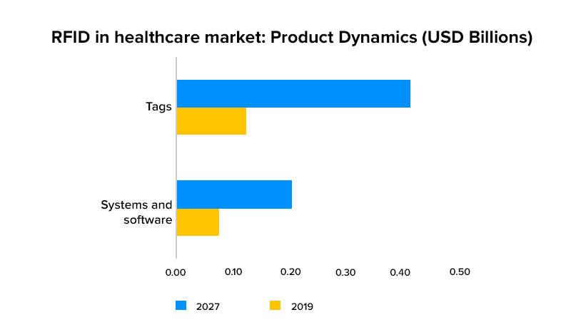 Precedence Research 的另一项研究强调,到 2027 年,全球 RFID 医疗保健市场规模将达到约120 亿美元,在 2020 年至 2027 年的预测期间,市场将以 21% 的复合年增长率增长。