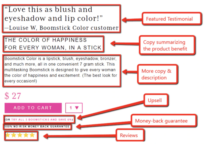 换句话说,您的购买框需要快速总结您产品的主要优势。 不幸的是,许多电子商务公司因不使用任何副本而错过了这个机会。