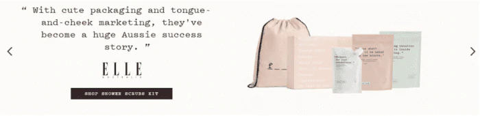 更有效的方法是在徽标中加上引语,就像 Frank Body 在这里所做的那样: