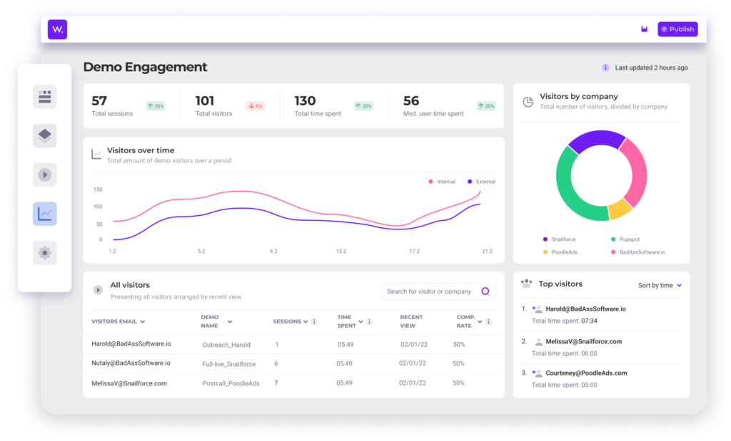 简而言之,Walnut 可让您提高产品演示转化率。 它允许您的工具重用演示并专注于有效的方法,从而提高您的工具的工作效率。 它还可以更轻松地说服更大的决策单位,因为您可以向所有潜在客户发送一个指向交互式演示的链接,这将帮助他们了解您的产品价值主张。