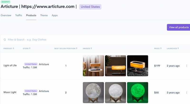 这是根据您认为最有价值的统计数据来组织排名靠前的商店的绝佳方式。 如果您想了解竞争并找到有效的营销和销售理念,这是一种快速的方法。