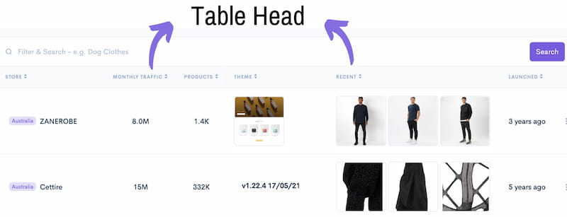 为方便起见,还有一些子标题可让您进一步根据每月流量、国家/地区、主题、应用程序及其发布时间过滤商店。 当然,还有一个搜索功能——它允许您轻松搜索您的利基市场。