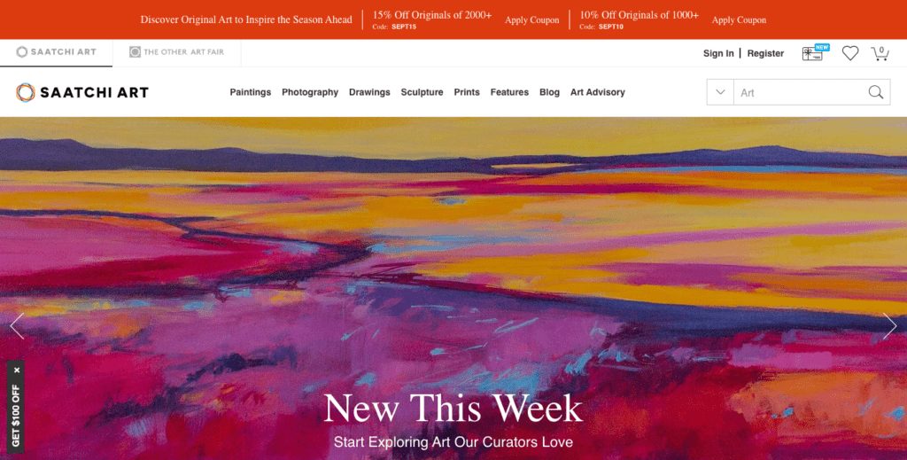 这个在线艺术画廊是寻求曝光的新锐艺术家的绝佳选择。 这个在线艺术市场拥有全球 60,000 多名艺术家。 Saatchi 不仅仅是销售艺术品。 他们还组织艺术博览会和策展人团体,并积极推广艺术家。