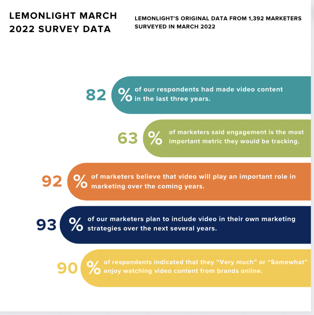 - 78% 的 B2B 营销人员计划在 2023 年投资视频营销,高于前一年的 69%。 (内容营销学院)