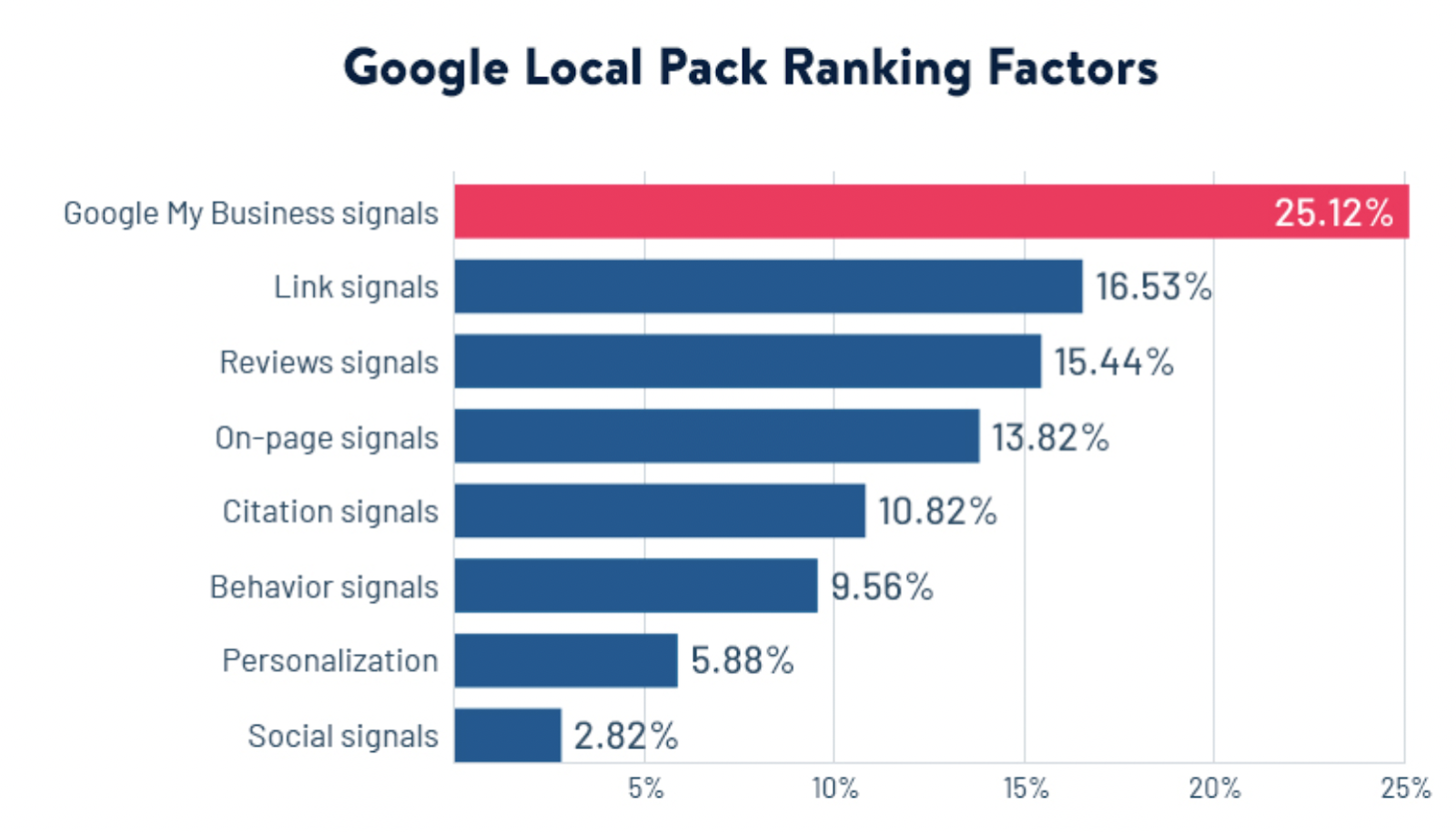 - 完整且准确的“Google 我的商家”列表获得的点击次数比那些缺少基本业务信息的列表多 7 倍,并且吸引位置访问的可能性高 70%。 (WebFX)
