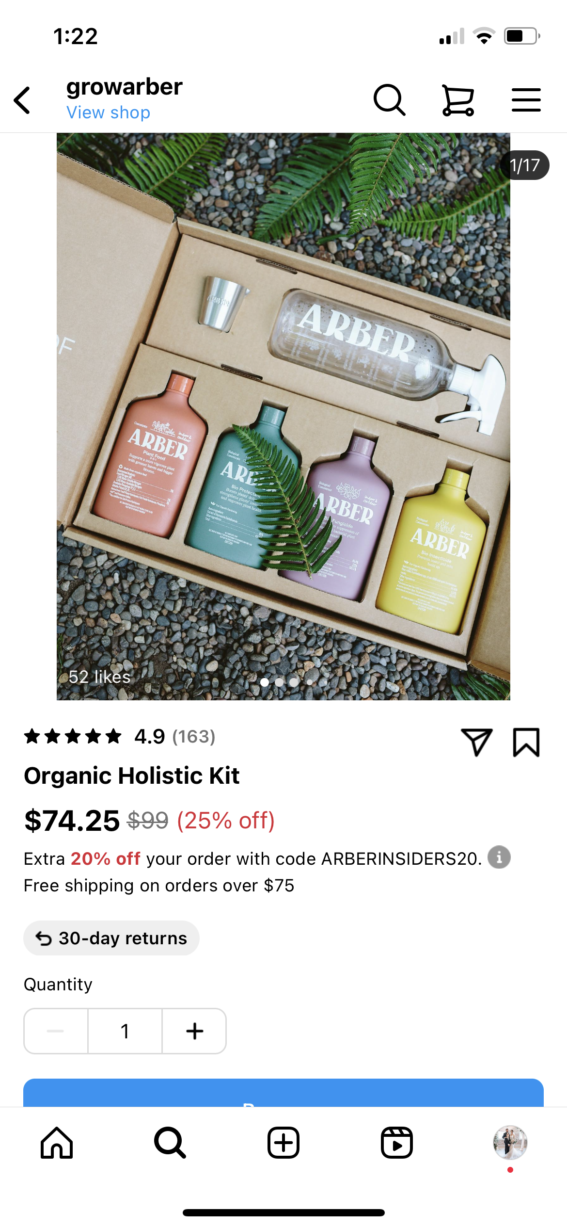 当产品显示在 Instagram 帖子上时,可以对其进行标记,以便客户只需点击一下即可查看购买详细信息。 单击标记的产品将引导您进入该产品的网站页面以供购买。 浏览器会在 Instagram 中弹出,因此当您关闭或完成购买时,您可以立即返回浏览。