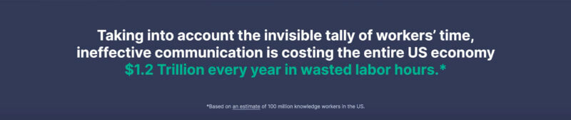 随着工作场所需求的发展,跨团队、客户和潜在客户的有效沟通至关重要。 几乎所有接受调查的企业领导者 (93%) 都承认有效沟通是他们业务的支柱。 从电子邮件到文档再到 ping,员工报告称,仅在书面交流上就花费了近 20 小时 (19.93),或者是典型每周 40 小时工作时间的一半。