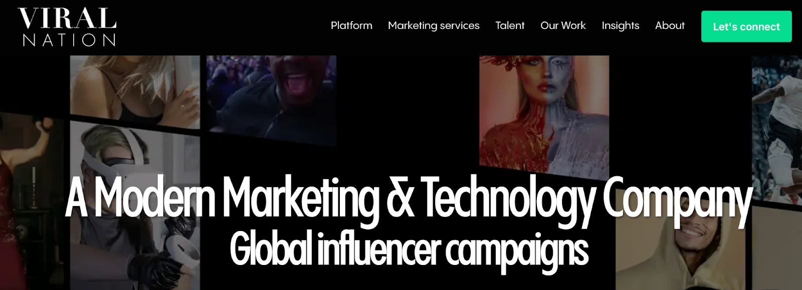 - Viral Nation 是一家營銷機構,通過創新的活動和各種廣告技術(如影響者營銷、內容創建、社交媒體管理等)來建立和增強您的客戶關係。