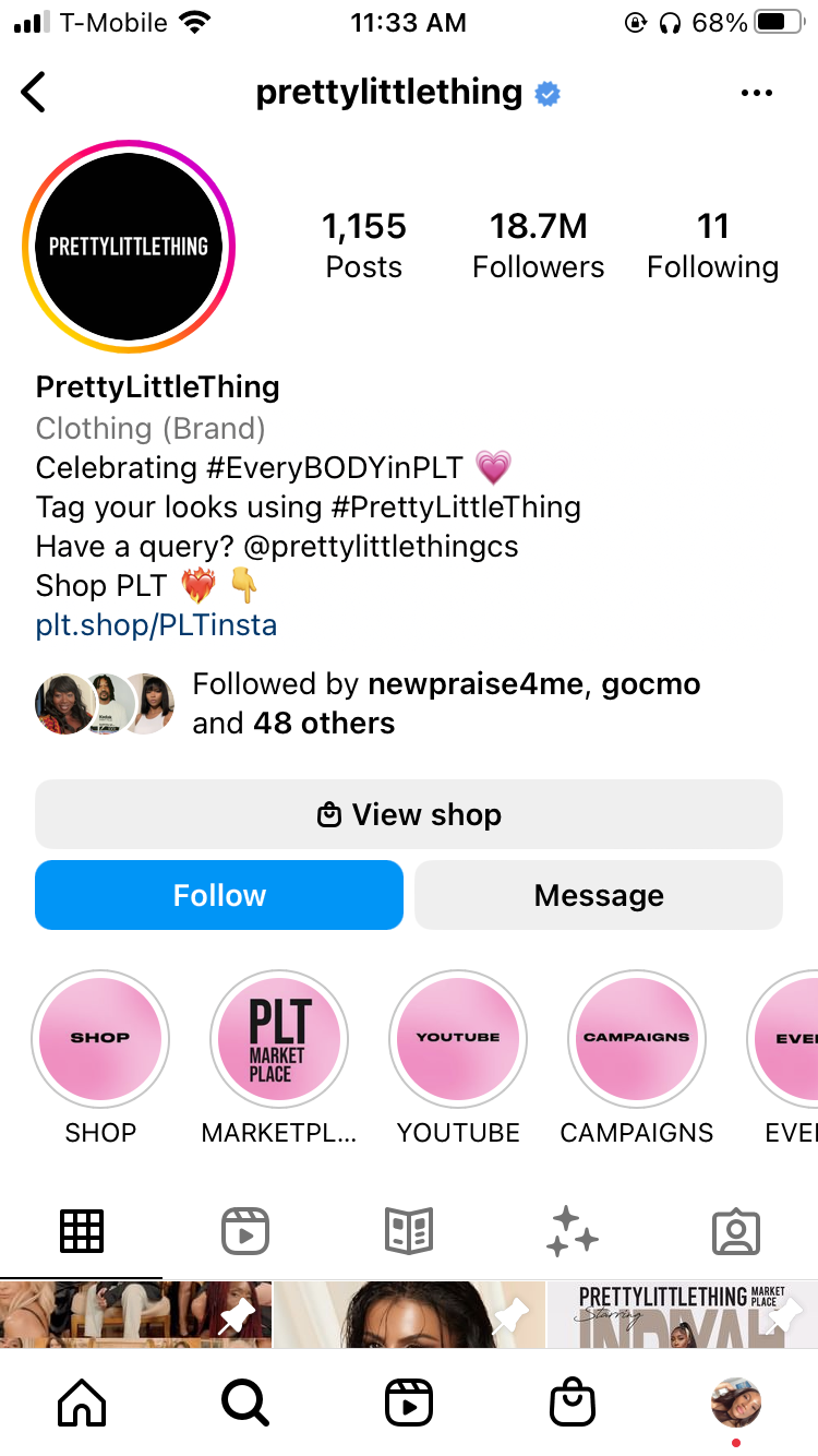 例如,時尚品牌 Pretty Little Thing 以擁抱用戶生成的內容而聞名,並擁有客戶可以使用的品牌標籤。 他們鼓勵顧客發布他們的服裝並標記品牌,以便有機會出現在 Pretty Little Thing 的頁面和/或 Instagram 故事中。